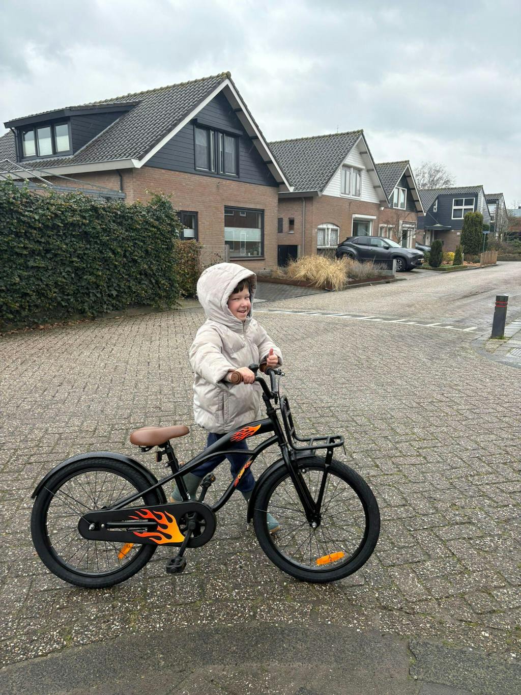 Leuke fiets alleen beetje jammer van de misleiding van de foto's want de meeste mensen lezen niet de beschrijving van kleine kinderfietsen maar de handvat slingers hebben we nu zelf opgelost en mandje opgepimt voor de jarige job morgen.
